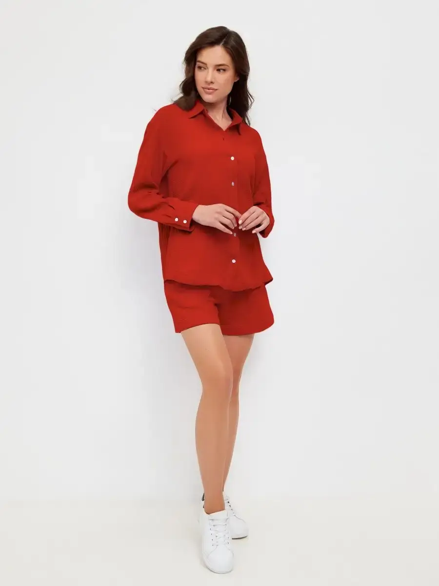 Женская домашняя одежда из муслина высокопрочная, износостойкая и воздухопроницаемая, позволяет коже дышать, в ней не жарко даже при максимальных температурах. Женская рубашка оверсайз со спущенной линией плеча, шорты женские свободного кроя с карманами, на удобной резинке, идеально садятся на любую фигуру. Женский костюм подойдет для весны, лета, прогулок по городу, для отдыха на пляже, путешествий, обычных прогулок по городу. Костюм в пижамном стиле идеально сочетается с купальником. Добавляя к женской рубашке и шортам лаконичные сандали, кроссовки, кеды, сабо - готов стильный повседневный образ. Женские шорты отлично сочетаются с лонгсливом или женским топиком. Также рубашку женскую летнюю и шорты женские можно носить по раздельности, создавая множество различных образов. Женский костюм подходит для девушек, женщин, подростков, беременных и молодых мам! В этом женском комплекте вам будет комфортно и удобно! Большие размеры, домашняя одежда, одежда на отдыхе. Костюм отлично подойдет в качестве подарка жене, маме, сестре, подруге.