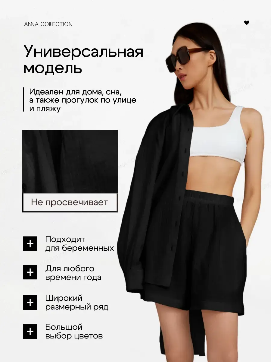 Женская домашняя одежда из муслина высокопрочная, износостойкая и воздухопроницаемая, позволяет коже дышать, в ней не жарко даже при максимальных температурах. Женская рубашка оверсайз со спущенной линией плеча, шорты женские свободного кроя с карманами, на удобной резинке, идеально садятся на любую фигуру. Женский костюм подойдет для весны, лета, прогулок по городу, для отдыха на пляже, путешествий, обычных прогулок по городу. Костюм в пижамном стиле идеально сочетается с купальником. Добавляя к женской рубашке и шортам лаконичные сандали, кроссовки, кеды, сабо - готов стильный повседневный образ. Женские шорты отлично сочетаются с лонгсливом или женским топиком. Также рубашку женскую летнюю и шорты женские можно носить по раздельности, создавая множество различных образов. Женский костюм подходит для девушек, женщин, подростков, беременных и молодых мам! В этом женском комплекте вам будет комфортно и удобно! Большие размеры, домашняя одежда, одежда на отдыхе. Костюм отлично подойдет в качестве подарка жене, маме, сестре, подруге.