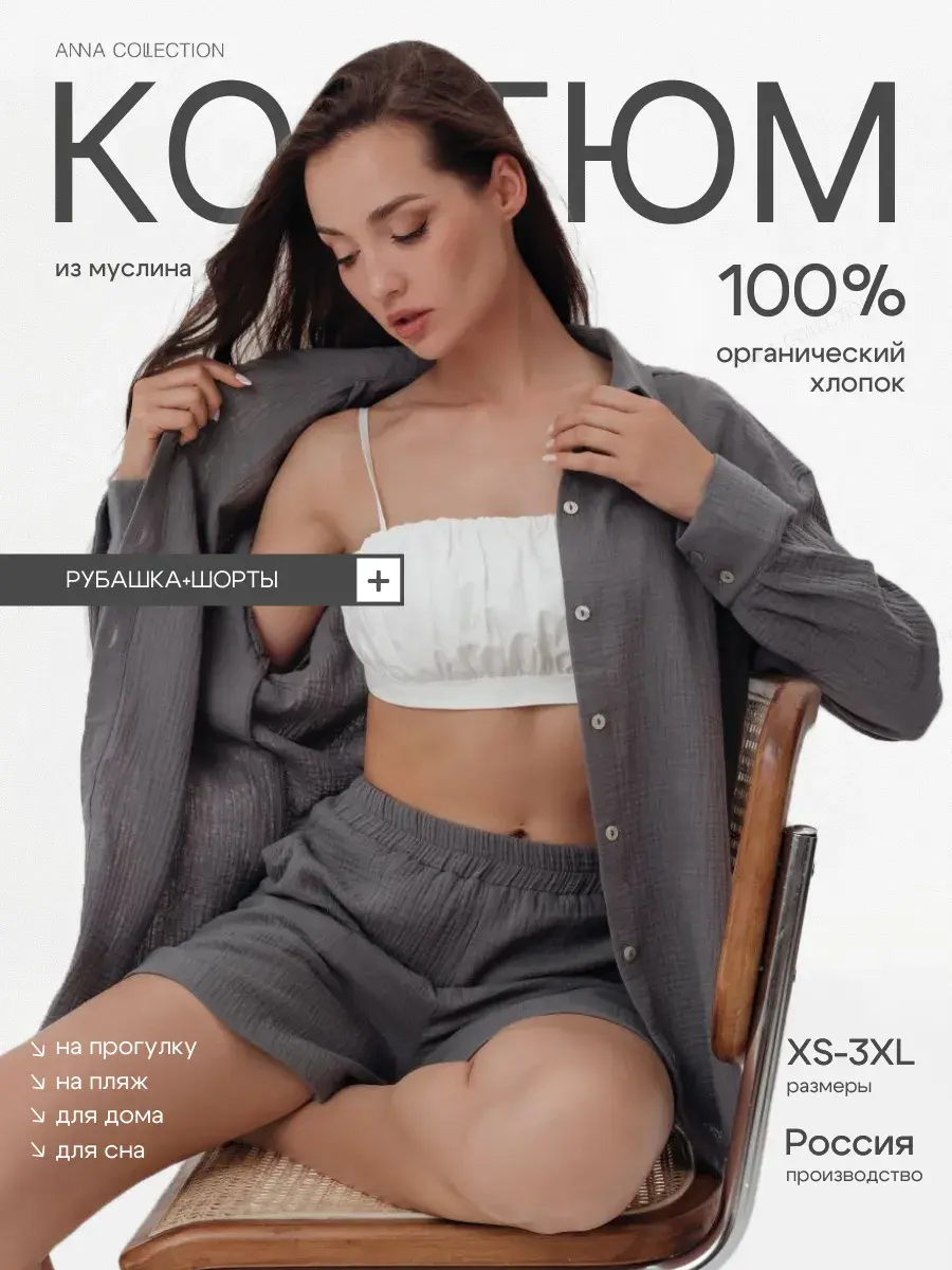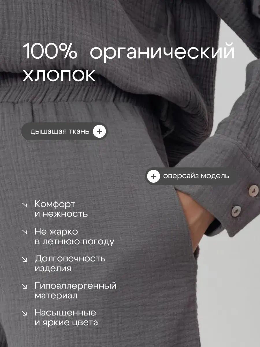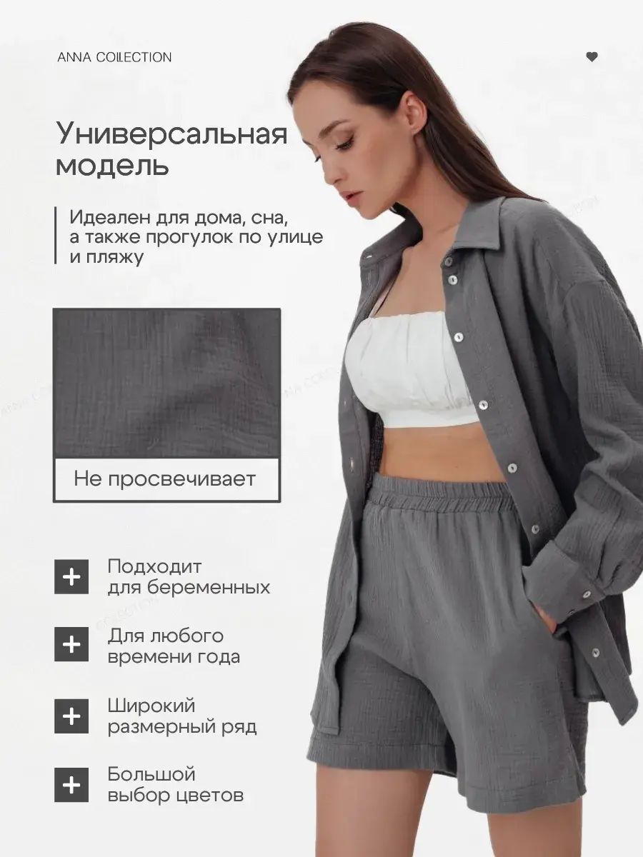 Женская домашняя одежда из муслина высокопрочная, износостойкая и воздухопроницаемая, позволяет коже дышать, в ней не жарко даже при максимальных температурах. Женская рубашка оверсайз со спущенной линией плеча, шорты женские свободного кроя с карманами, на удобной резинке, идеально садятся на любую фигуру. Женский костюм подойдет для весны, лета, прогулок по городу, для отдыха на пляже, путешествий, обычных прогулок по городу. Костюм в пижамном стиле идеально сочетается с купальником. Добавляя к женской рубашке и шортам лаконичные сандали, кроссовки, кеды, сабо - готов стильный повседневный образ. Женские шорты отлично сочетаются с лонгсливом или женским топиком. Также рубашку женскую летнюю и шорты женские можно носить по раздельности, создавая множество различных образов. Женский костюм подходит для девушек, женщин, подростков, беременных и молодых мам! В этом женском комплекте вам будет комфортно и удобно! Большие размеры, домашняя одежда, одежда на отдыхе. Костюм отлично подойдет в качестве подарка жене, маме, сестре, подруге.