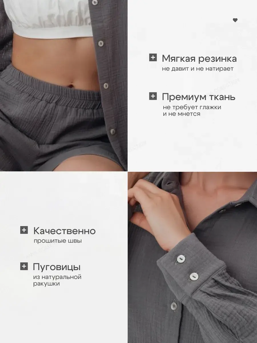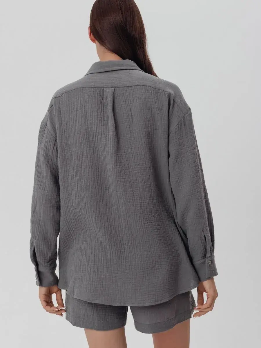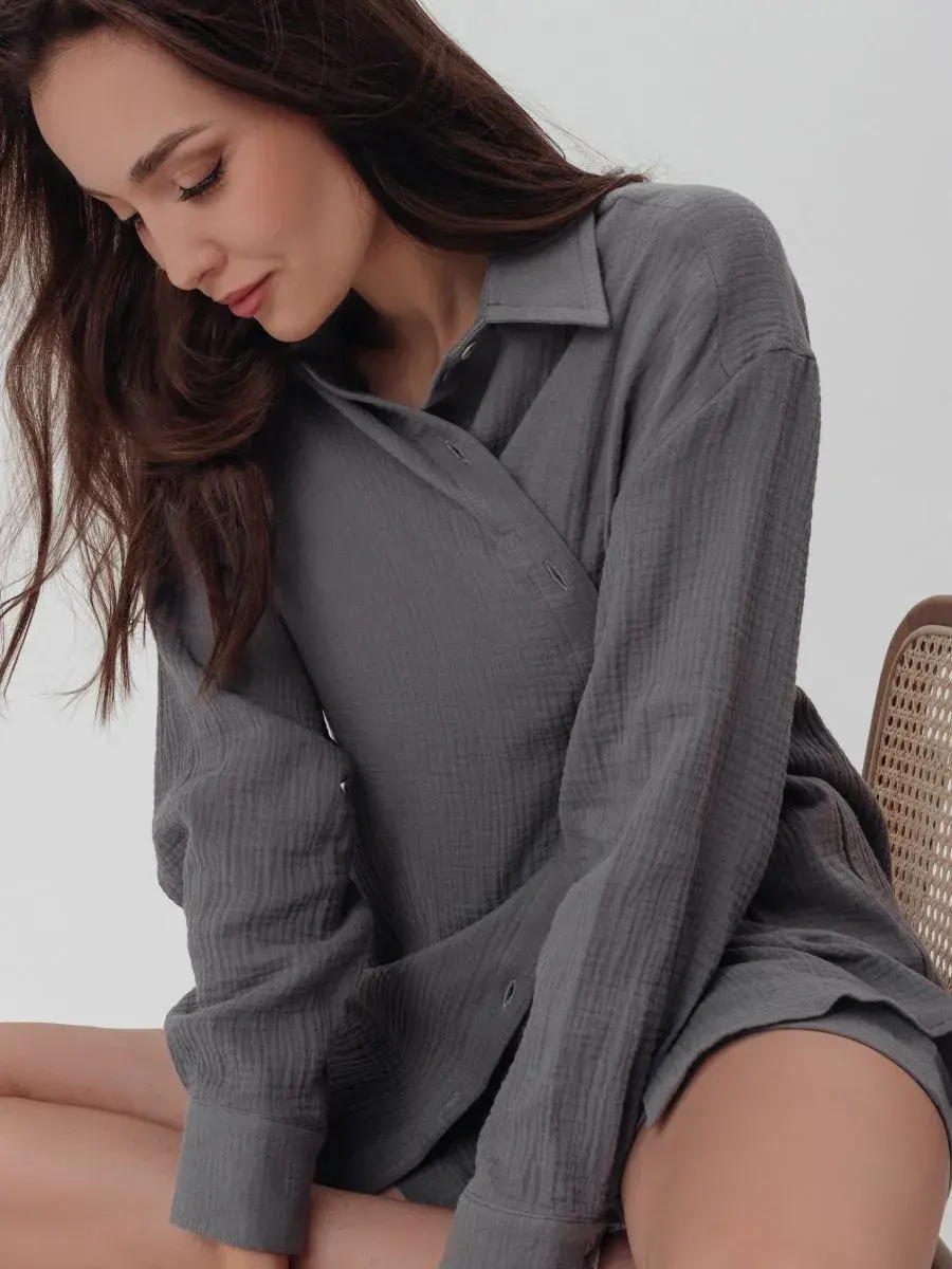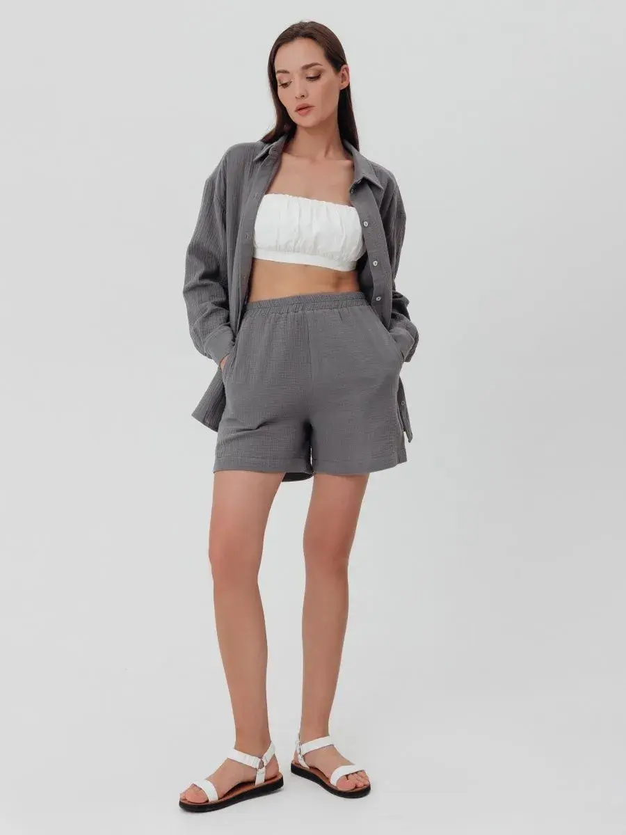 Пижамный костюм рубашка с шортами изготовлен из муслина, 100% хлопок.