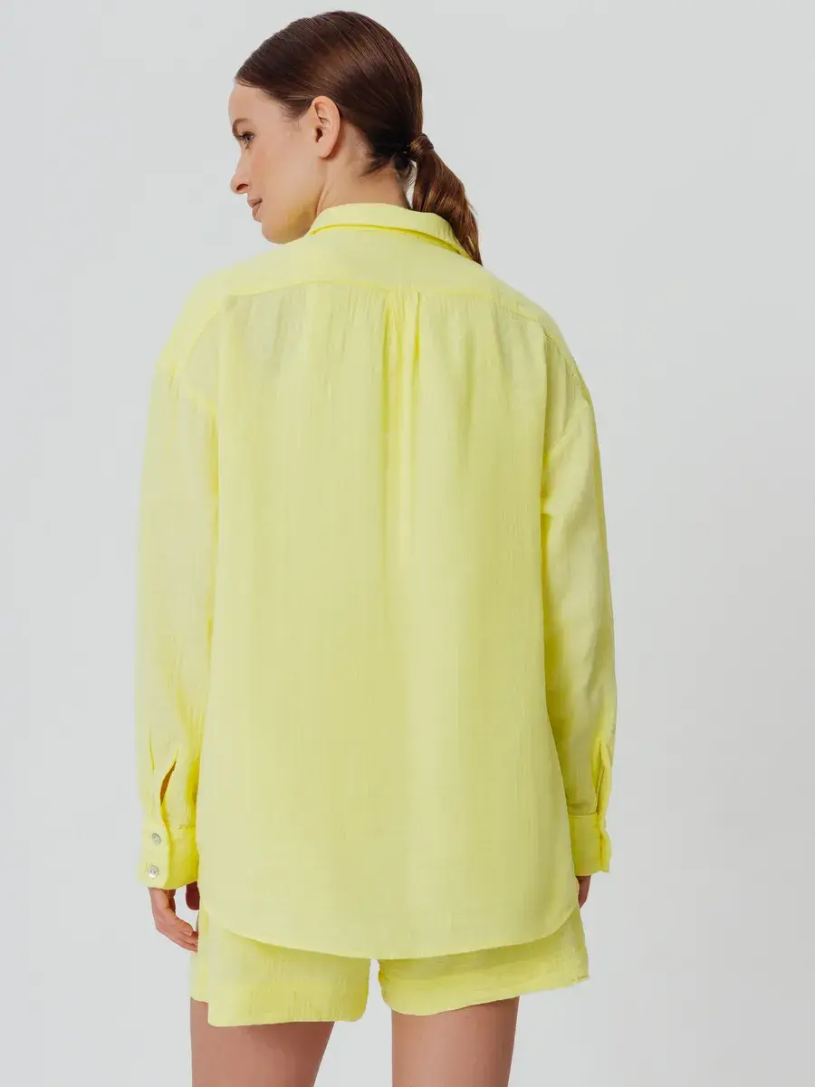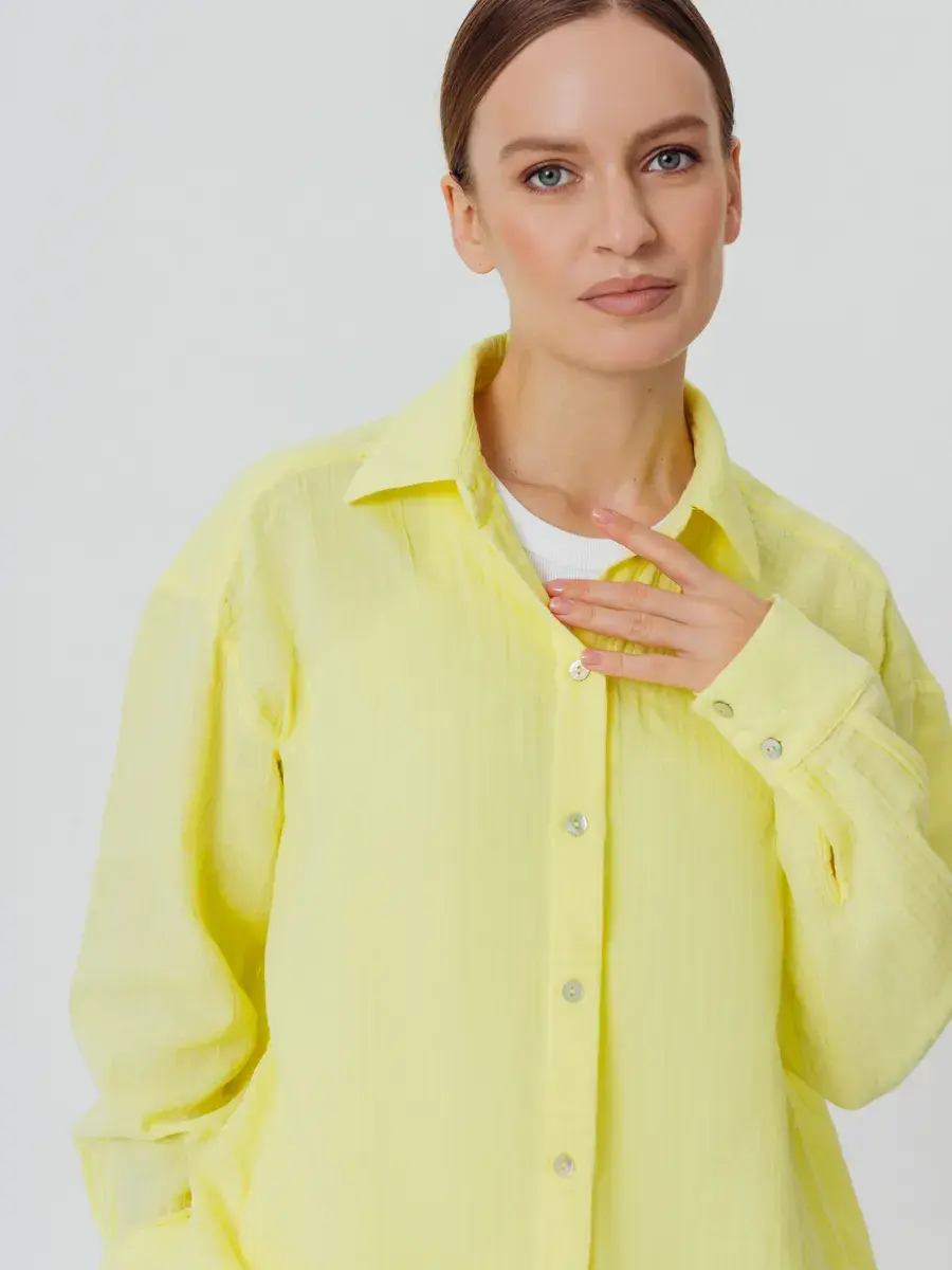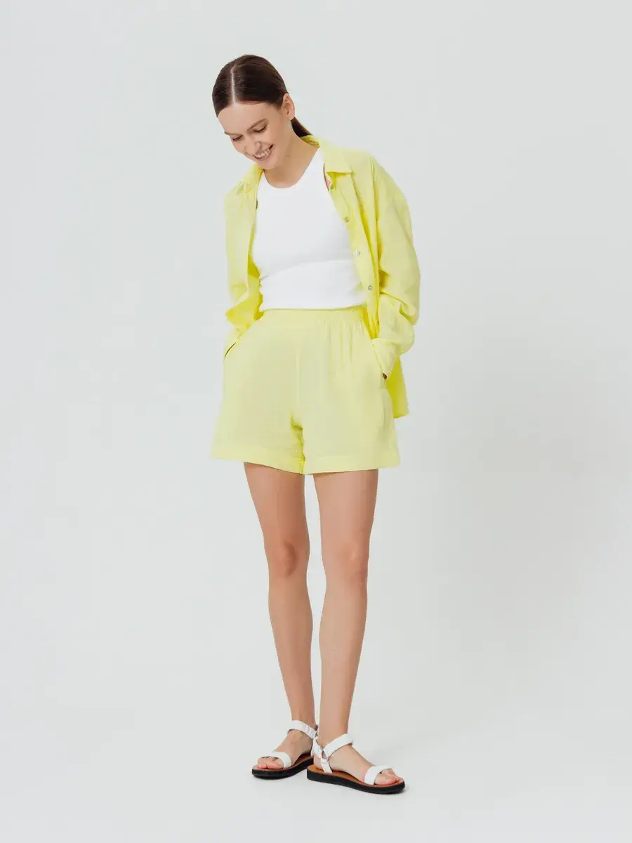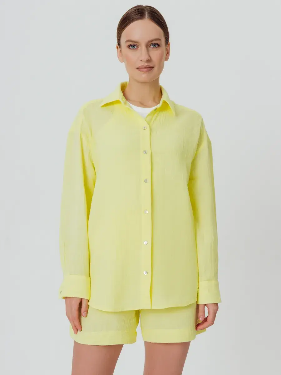 Костюм с шортами женский пижамного стиля. Изготовлен из легкого, нежного муслина. Ткань воздухопроницаема, что позволяет уверенно себя чувствовать на протяжении всего дня. Ткань не вызывает аллергии. Женский костюм из рубашки с шортами свободного кроя нежно и мягко сидит на теле не стесняя движений. Костюм женский подчеркнет женственность и романтичность в образе. Комфортно и удобно носится в течении всего дня.
