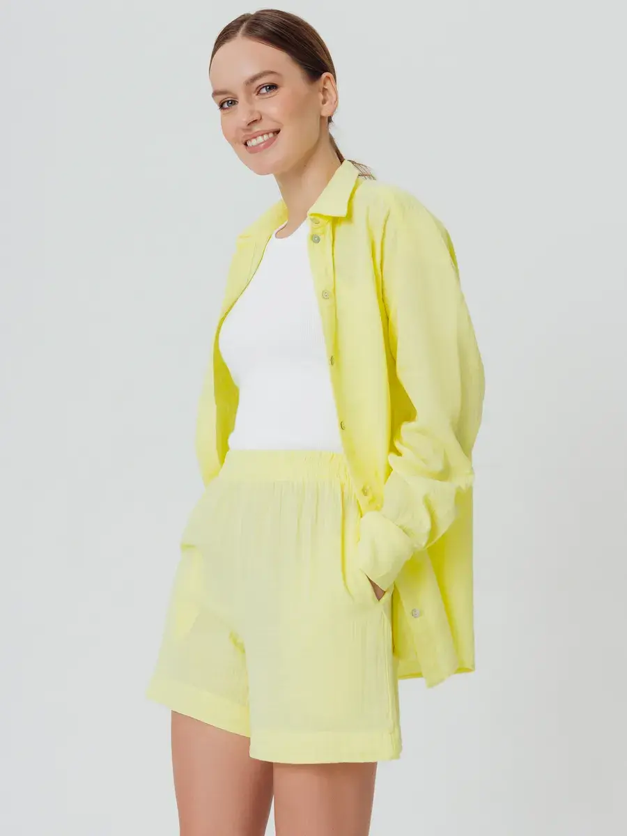 Пижамный костюм рубашка с шортами изготовлен из муслина, 100% хлопок.