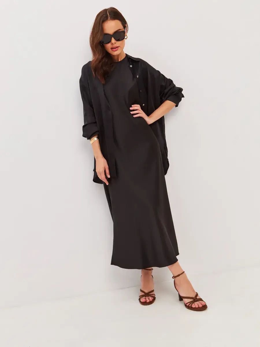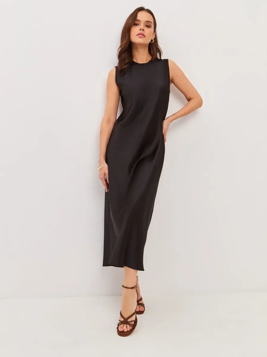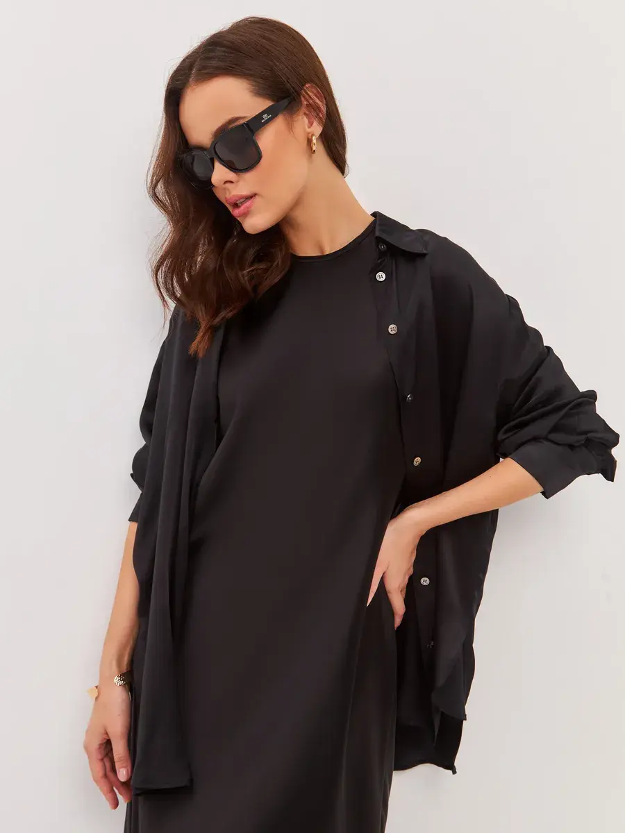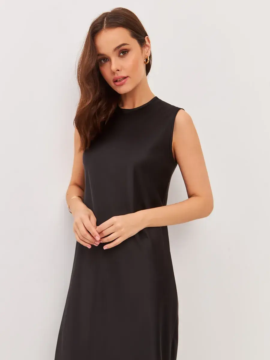 Это платье отлично подходит как для работы, так и для встреч с друзьями или прогулок по городу. Оно легко стирается и быстро сохнет, что делает его практичным выбором для активного образа жизни. Если вы ищете универсальное решение для создания стильного гардероба, это базовое платье станет отличным дополнением к вашей коллекции.