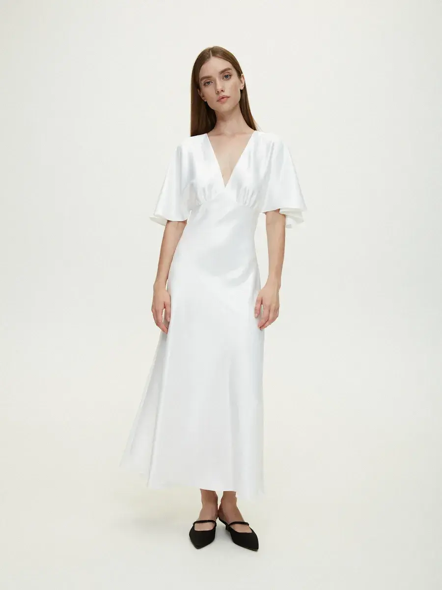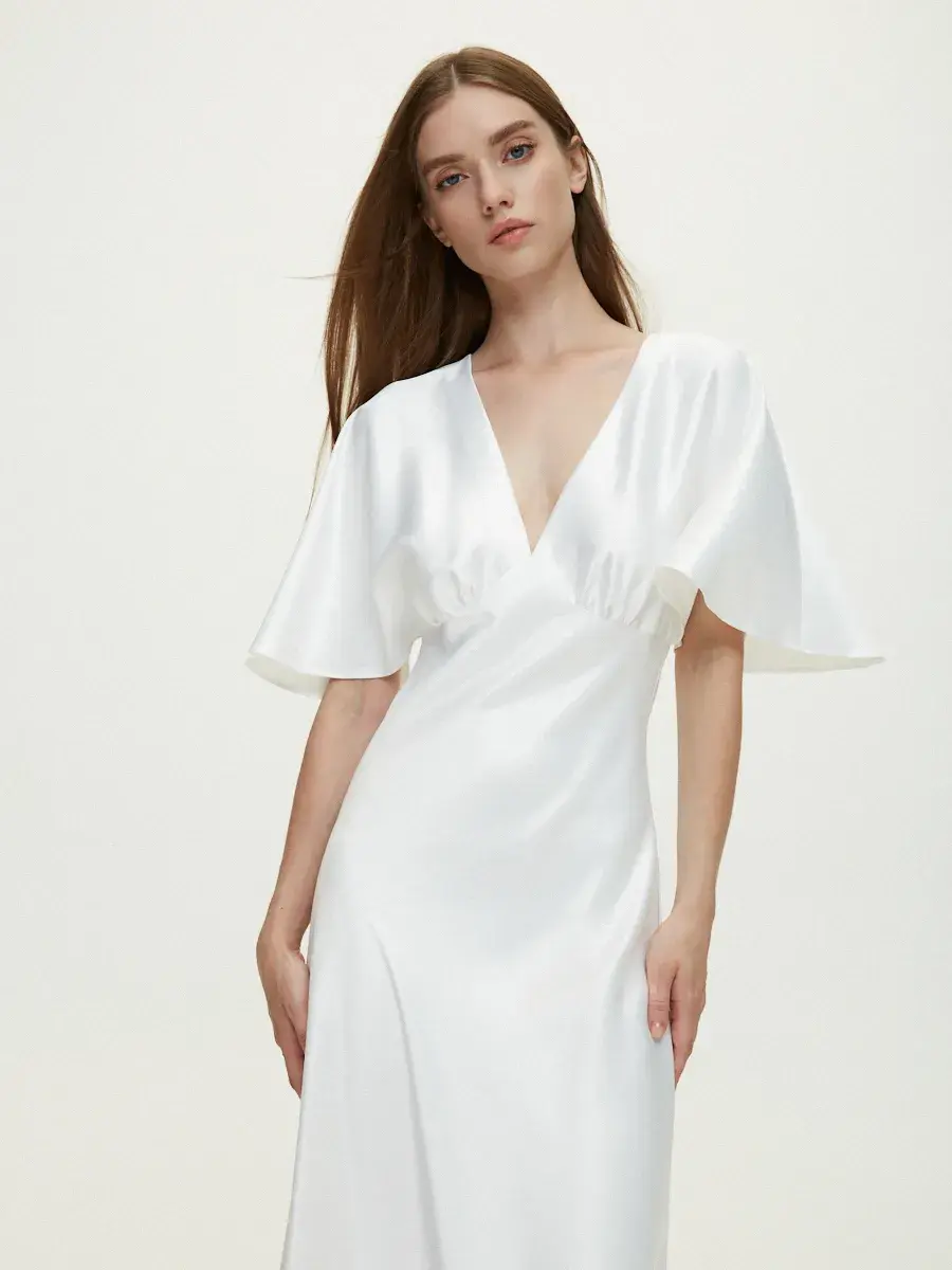 Шелковое платье-комбинация с крылышками прочно заняло место в перечне классических вещей.