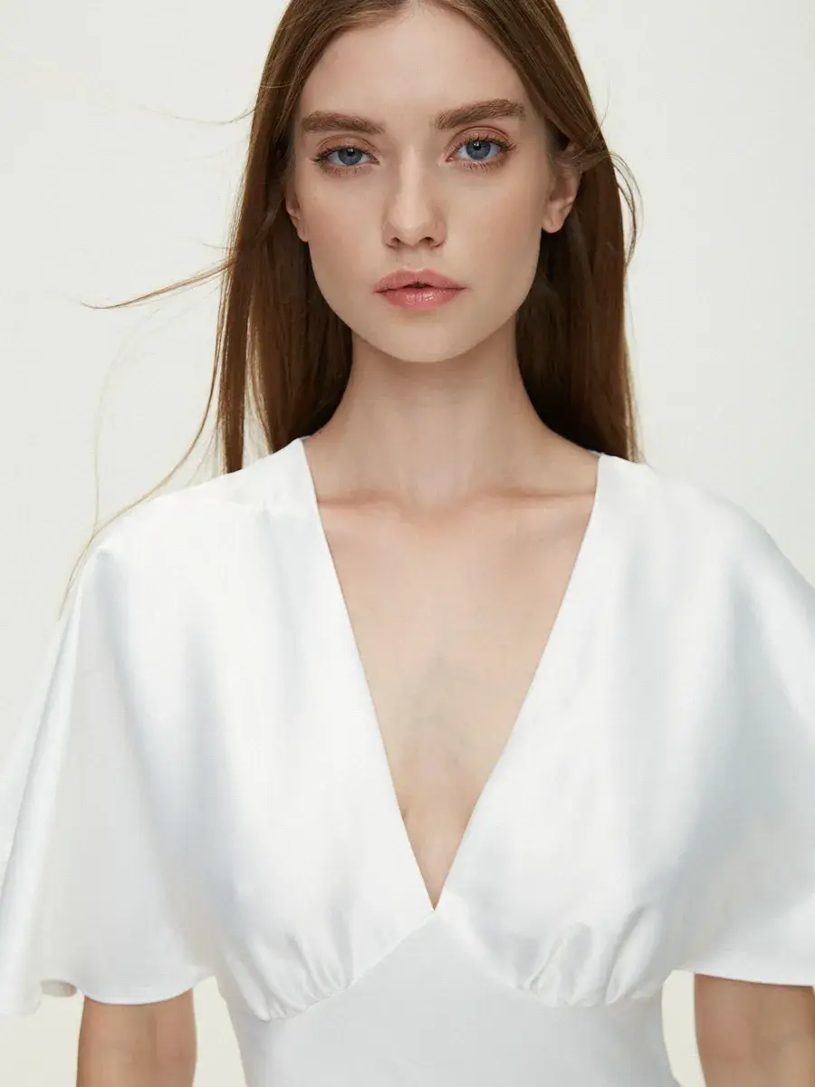Шелковое платье комбинация с рукавами крылышками и V – образным вырезом отличный выбор для любого мероприятия. Струящаяся ткань, придаст парящий, нежный образ женственности. Платье женское благодаря шелковой ткани изящно блестит и переливается при скольжении во время ходьбы, не оставит вас незамеченной. Платье комбинация с рукавами подходит как для коктейльной вечеринки так и для торжественного события, а также может стать нарядным офисным образом. Прекрасно подойдет для свидания и прогулки, как одежда для нового года, дня рождения, платье для подружки невесты. Форма платья и качество пошива подчеркивает изящную линию фигуры и придает элегантный вид. Благодаря свободному покрою подходит на любую фигуру, даже беременным, подчеркнет и украсит небольшой животик будущей мамы. Модное платье из шелка хорошо сочетается с пиджаком, свитером, блейзером. Это платье придаст вам легкость, игривость и очарование. Широкий размерный ряд позволяет выбрать женское платье больших размеров (50, 52).