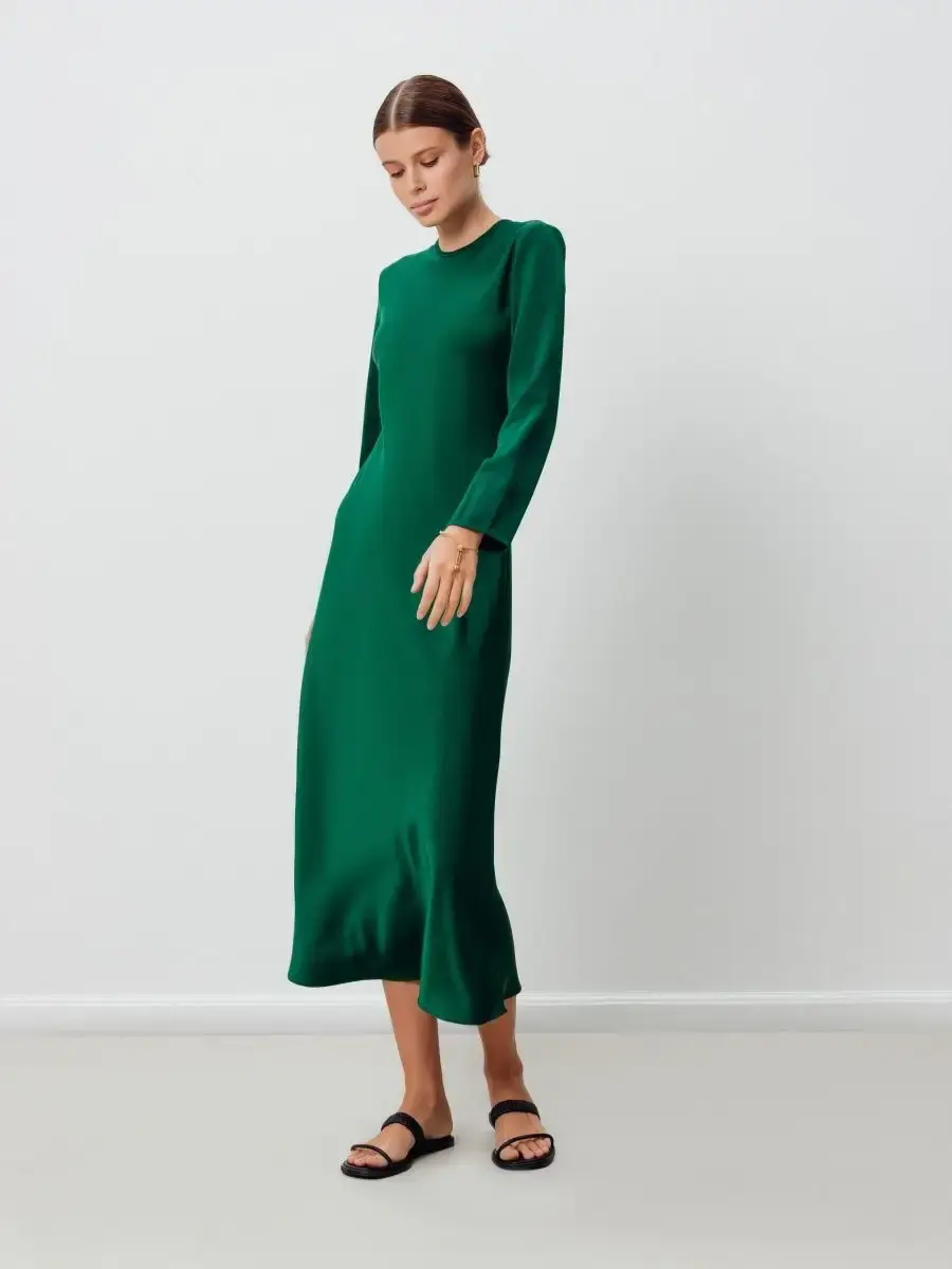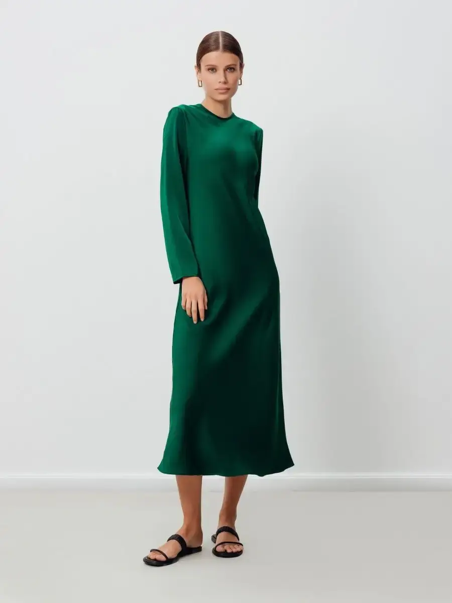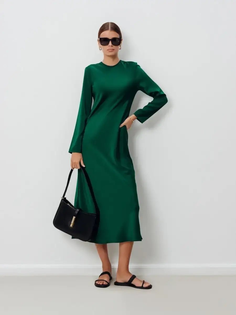 Платье миди с длинным рукавом – идеальный вариант для того, чтобы разнообразить повседневный и вечерний гардероб. Платье женское выполнено из качественной натуральной ткани 100% вискоза. Платье женское вечернее без подклада. Платье нарядное женское полуприталенного кроя скроено по косой. Платье миди очень популярно, которое сочетает в себе женственность, стиль, удобство и сексуальность. Стильное женское платье практично и удобно носить, как на каждый день, так и отлично подойдет для торжественных событий. Идеальное модное платье миди для офиса и создания деловых образов. Универсальное платье сочетается с лодочками, босоножками, туфлями, а также сапогами для прохладного периода. Длинное сексуальное платье будет превосходно смотреться с укороченной курткой, как кожаной, так и стеганой. Платье ниже колена подходит на любой рост, как для высоких, так и невысоких девушек. Платье трапеция отлично подойдет на новый год, на корпоратив, для подружек невесты, школы, для выпускного, на 8 марта, на 14 февраля, на день рождение, на работу, на деловую встречу, для корпоратива. Наше платье-комбинация можно найти по запросу: платье женское, белое вечернее платье, платье женское средней длины, нарядное платье на новый год, платье миди, платье летнее из вискозы, платье женское из вискозы, платье однотонное, платье женское больших размеров, праздничное платье, коктейльное платье, строгое платье, молодежное платье, свадебное платье.