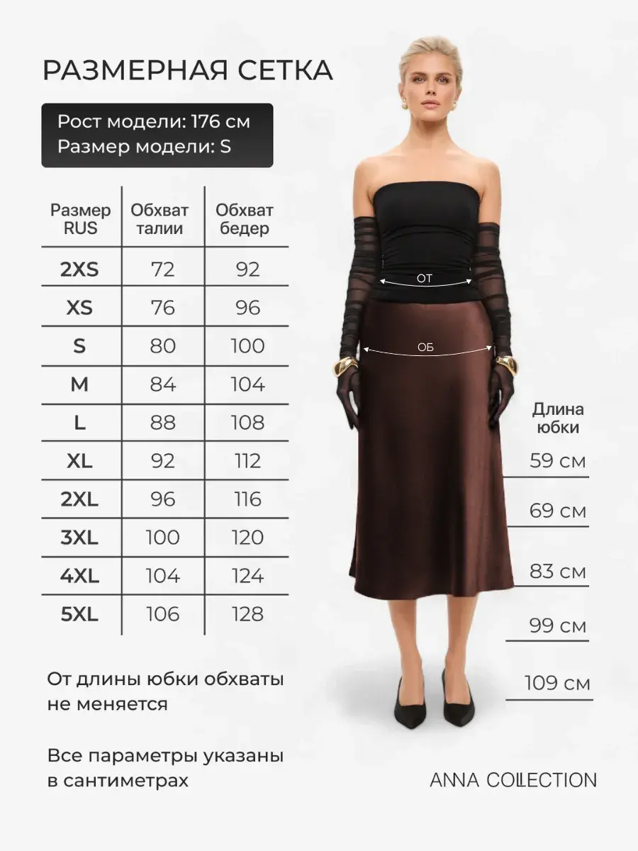 Атласная юбка от ANNA COLLECTION представляет собой изысканное базовое решение для женского гардероба. Изготовленная из плотного искусственного шелка, она обладает шелковистой фактурой и однотонным цветом, что делает её универсальной и практичной. Длина юбки в стиле мини, миди, макси, в пол и модель трапеция обеспечивают комфортную и элегантную посадку, подходящую для делового и офисного стиля или праздничных нарядов.