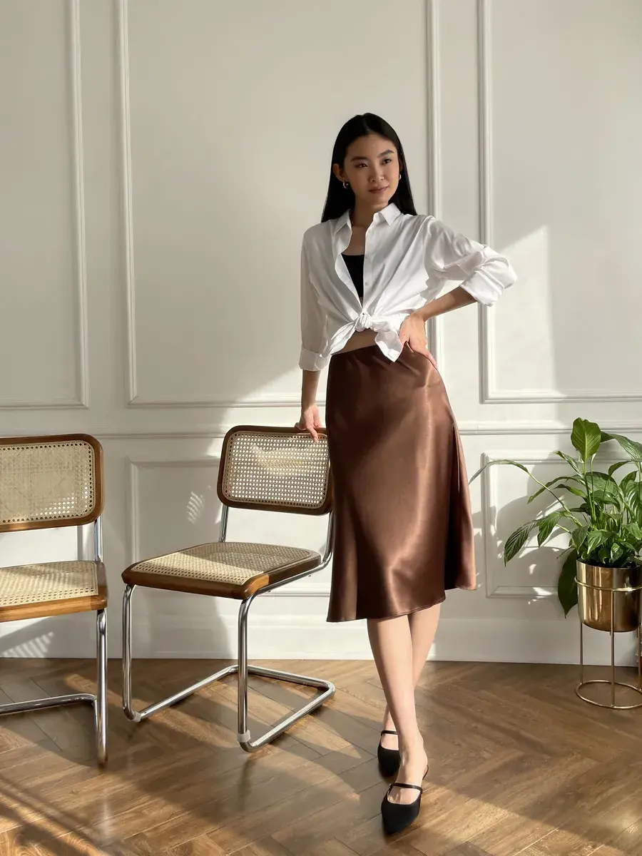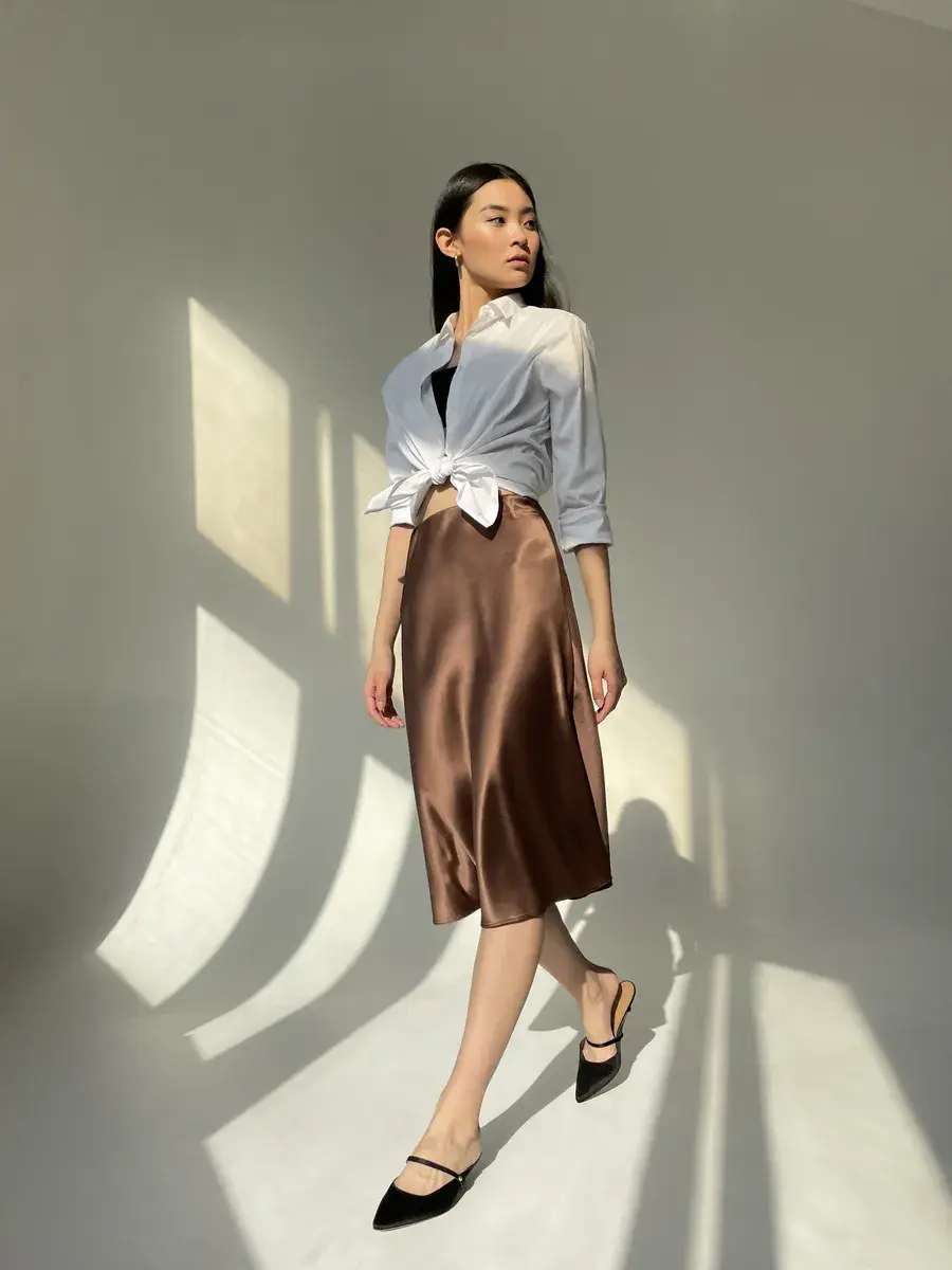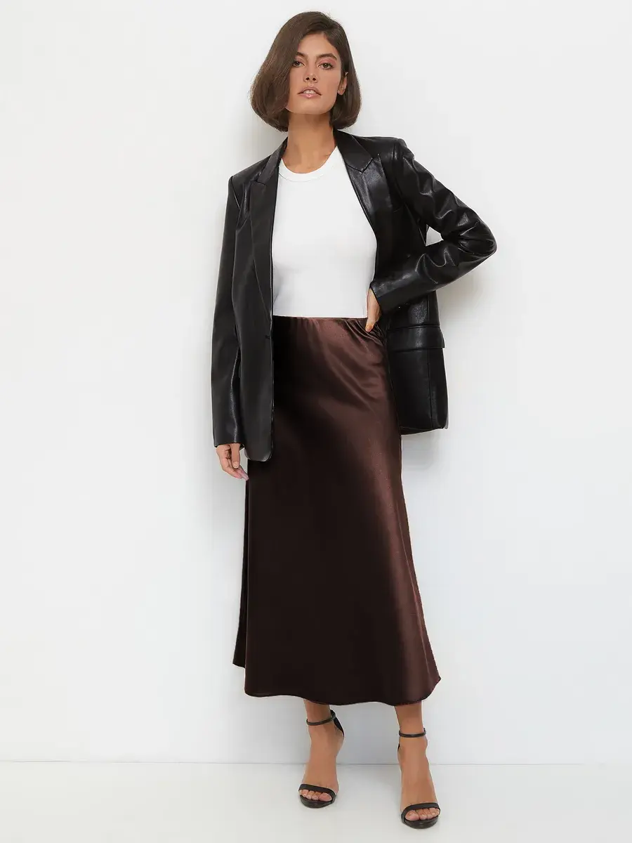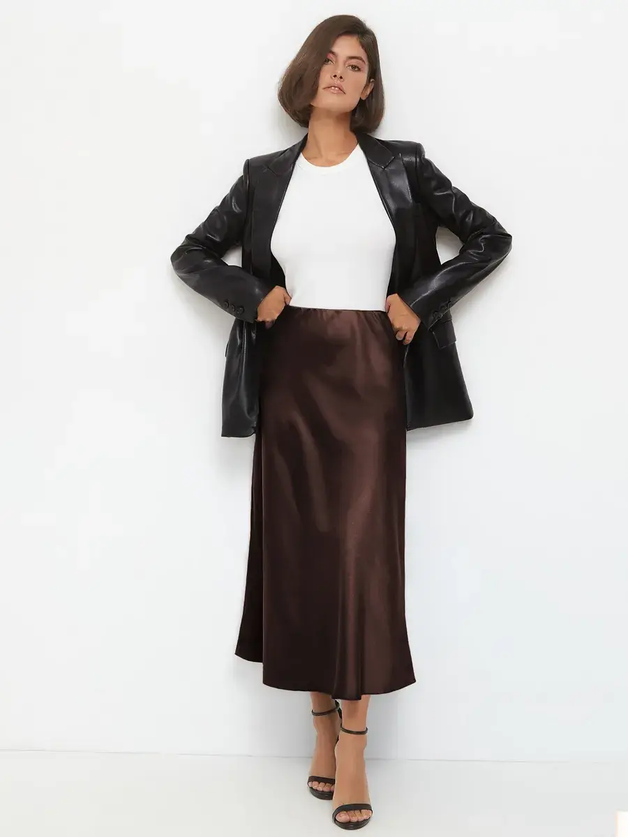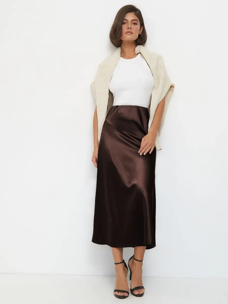 Шоколадная женская юбка — это классика, которая никогда не выйдет из моды. Она прекрасно комбинируется с различными топами и блузками, позволяя создавать как строгие офисные, так и более расслабленные образы. В осенний и зимний период сатиновая юбка станет надежным вариантом для создания стильного лука, который подчеркнёт Вашу индивидуальность.