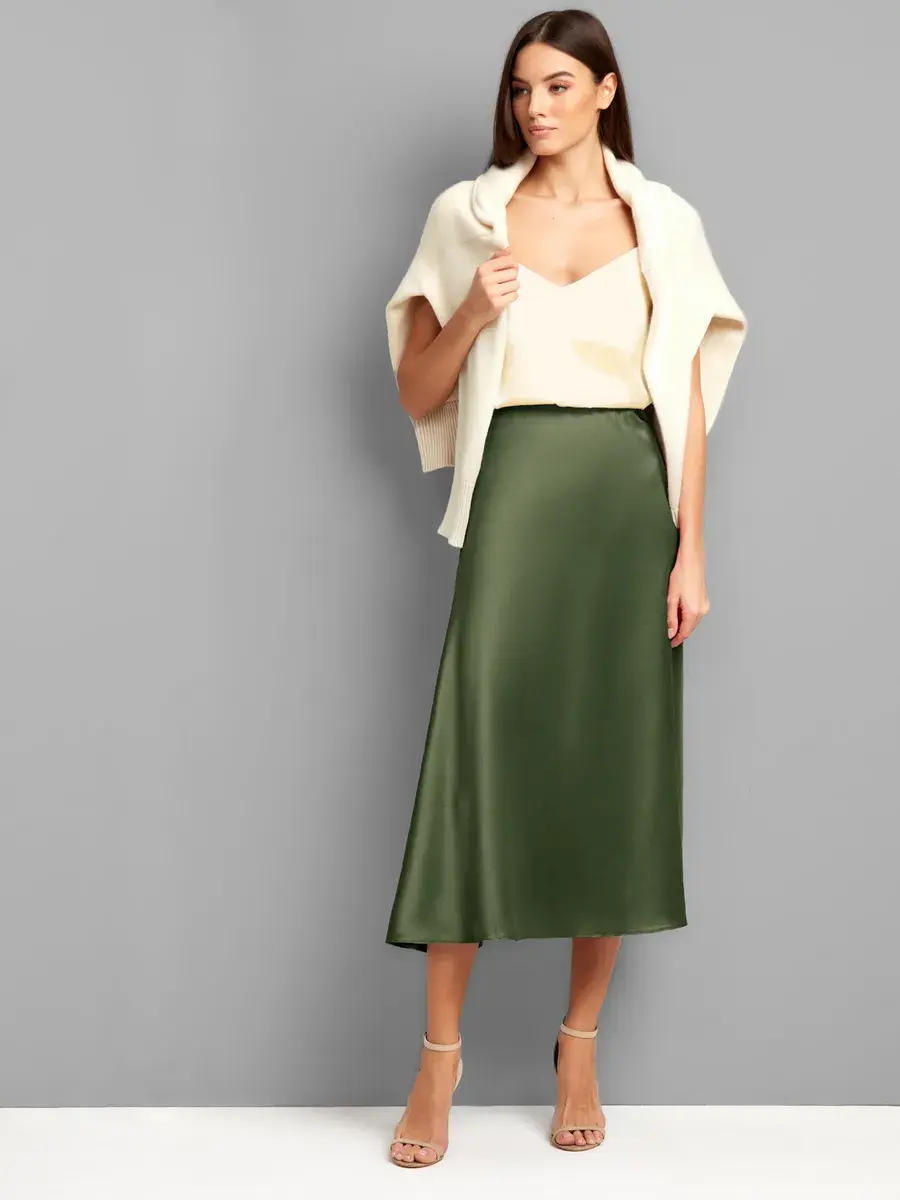 Уважаемые покупательницы! Рекомендуем при выборе ростовки ориентироваться на длину юбки по боковому шву, не по своему росту. Таким образом вы сможете подобрать, ту длину, которая идеально вам подойдет. Мы юбки в 5-х длинах, чтобы каждая девушка смогла выбрать себе подходящую. Длина по боковому шву: 59 см, 69 см, 83 см, 99 см, 109 см. Вы можете выбрать любую ростовку! Атласная юбка - хит уже не первого сезона и эталон минимализма. Юбка с завышенной талией шьется по косой (под углом 45 градусов) эта ткань хорошо растяжима. И поэтому на участках косины ткань вытягивается по длине под тяжестью собственного веса, а там, где она больше приближена к долевому или поперечному направлениям,-нет. Шелковая юбка цвета хаки, длина мини/миди / макси, базовая вещь в гардеробе у каждой девушки. Юбка длинная без подклада, пояс на резинке. Офисная юбка идеально сочетается с футболками, с женскими топами, объёмными и прилегающими джемперами и лаконичной базовой обувью, а также с топом на тонких бретелях и туфлями на высоком каблуке. В женской юбке Вы будете неотразимы на вечеринке, на выпускном, в офисе, на свадьбе. Благодаря отсутствию подклада шелковая ткань изящно струится по вашим ногам подчеркивая манящий, сексуальный, чарующий вид. Длинная юбка трапеция визуально вытянет вашу фигуру, и придаст элегантность внешнего вида, при этом не сковывая движений. Наши юбки мы шьем сами. Наша цель, удовлетворение качеством нашей продукции любую женщину. Мы тщательно следим за технологией, используем только лучшие шелковые ткани. Каждая юбка проходит проверку на качество материала, пошива и обработки. Это шикарный наряд как для офисного стиля, так и для праздничного настроения. Такая юбка впишется в любой гардероб, её можно легко комбинировать под любой образ, как для офиса, так и для свидания, и т.д. А так же за счёт удобного кроя, она отлично подойдёт для ежедневной носки. Юбка осенне-зимняя женская из плотной ткани. Антистатик, не липнет.