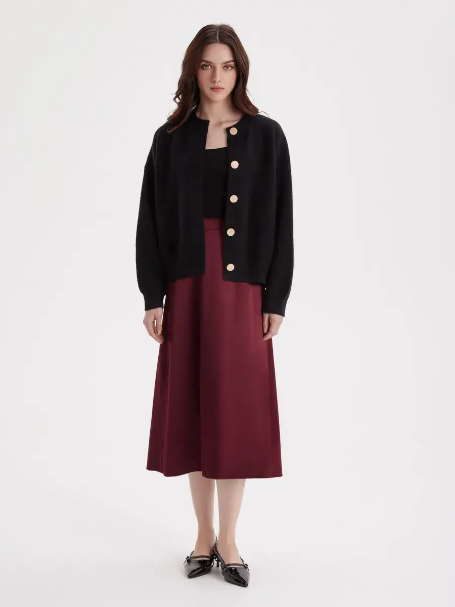 Модель юбки выполнена в форме трапеции, что подчеркивает фигуру, а эластичный материал обеспечивает отличное прилегание и удобство. Немнущаяся и неэлектризующаяся ткань позволяет быстро подготовиться к любому событию. Длинная юбка на резинке не имеет декоративных элементов, что делает её универсальной и легко сочетаемой с различными верхними вещами осенью и зимой. Эта сатиновая юбка подойдет для женщин с большими размерами, будущих мам, желающих выглядеть стильно и элегантно.