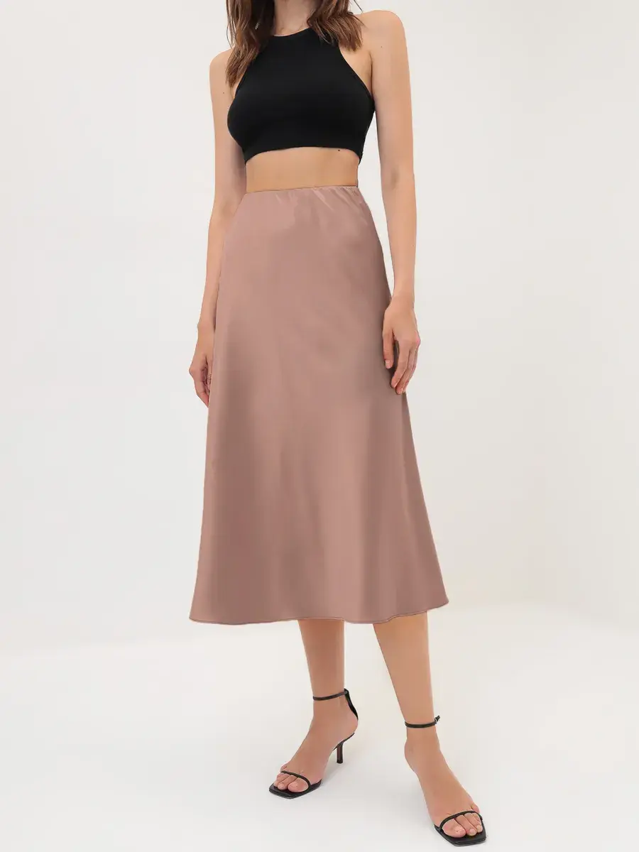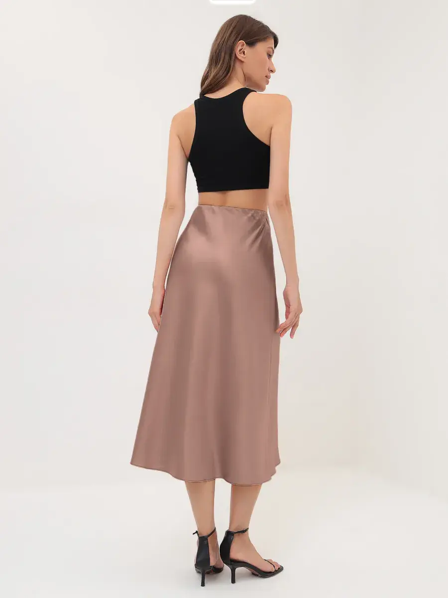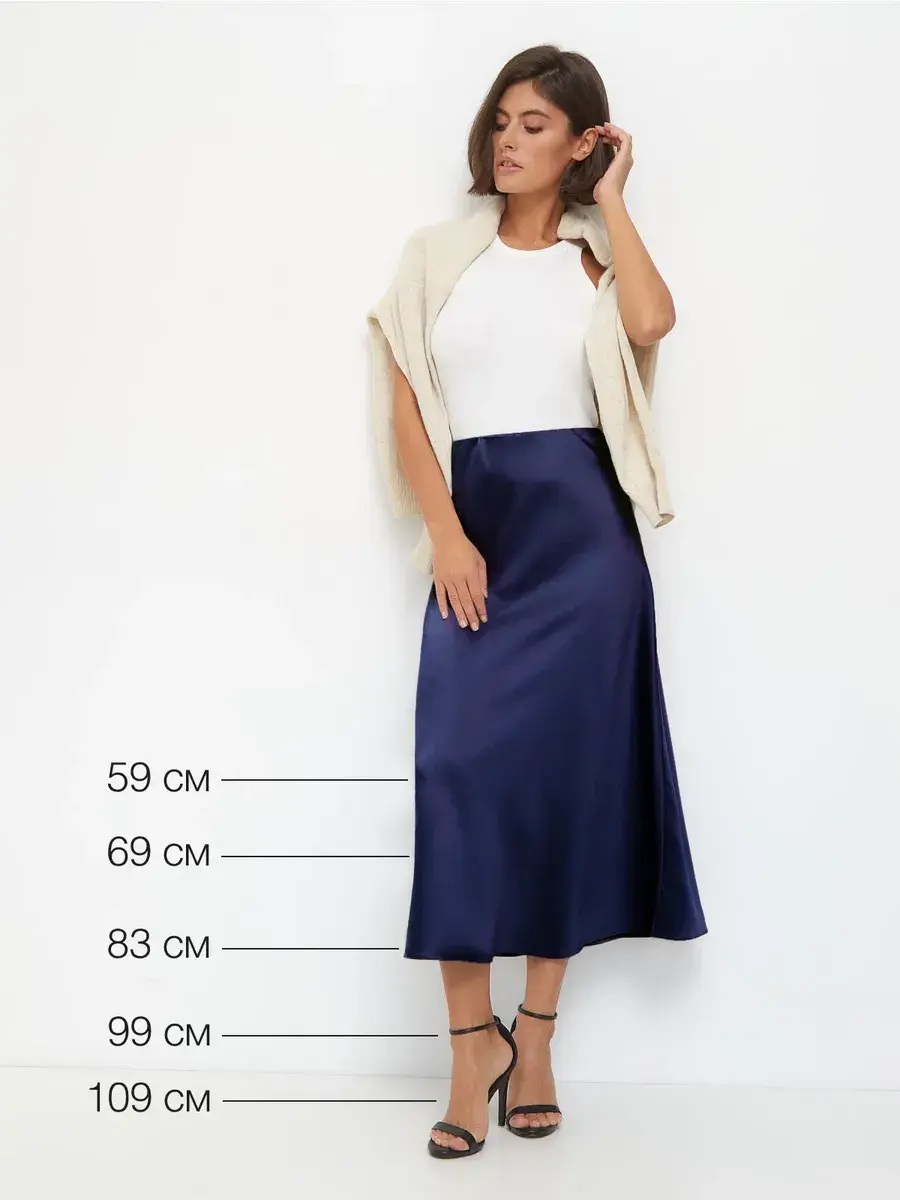 Уважаемые покупательницы! Рекомендуем при выборе ростовки ориентироваться на длину юбки по боковому шву, не по своему росту. Таким образом вы сможете подобрать, ту длину, которая идеально вам подойдет. Мы юбки в 5-х длинах, чтобы каждая девушка смогла выбрать себе подходящую. Длина по боковому шву: 59 см, 69 см, 83 см, 99 см, 109 см. Вы можете выбрать любую ростовку! Атласная юбка - хит уже не первого сезона и эталон минимализма. Юбка с завышенной талией шьется по косой (под углом 45 градусов) эта ткань хорошо растяжима. И поэтому на участках косины ткань вытягивается по длине под тяжестью собственного веса, а там, где она больше приближена к долевому или поперечному направлениям,-нет. Шелковая юбка, длина миди \ макси, базовая вещь в гардеробе у каждой девушки. Юбка длинная без подклада, пояс на резинке. Офисная юбка идеально сочетается с футболками, с женскими топами, объёмными и прилегающими джемперами и лаконичной базовой обувью, а также с топом на тонких бретелях и туфлями на высоком каблуке. В женской юбке Вы будете неотразимы на вечеринке, на выпускном, в офисе, на свадьбе. Благодаря отсутствию подклада шелковая ткань изящно струится по вашим ногам подчеркивая манящий, сексуальный, чарующий вид. Длинная юбка трапеция визуально вытянет вашу фигуру, и придаст элегантность внешнего вида, при этом не сковывая движений. Наши юбки мы шьем сами. Наша цель, удовлетворение качеством нашей продукции любую женщину. Мы тщательно следим за технологией, используем только лучшие шелковые ткани. Каждая юбка проходит проверку на качество материала, пошива и обработки. Это шикарный наряд как для офисного стиля, так и для праздничного настроения.