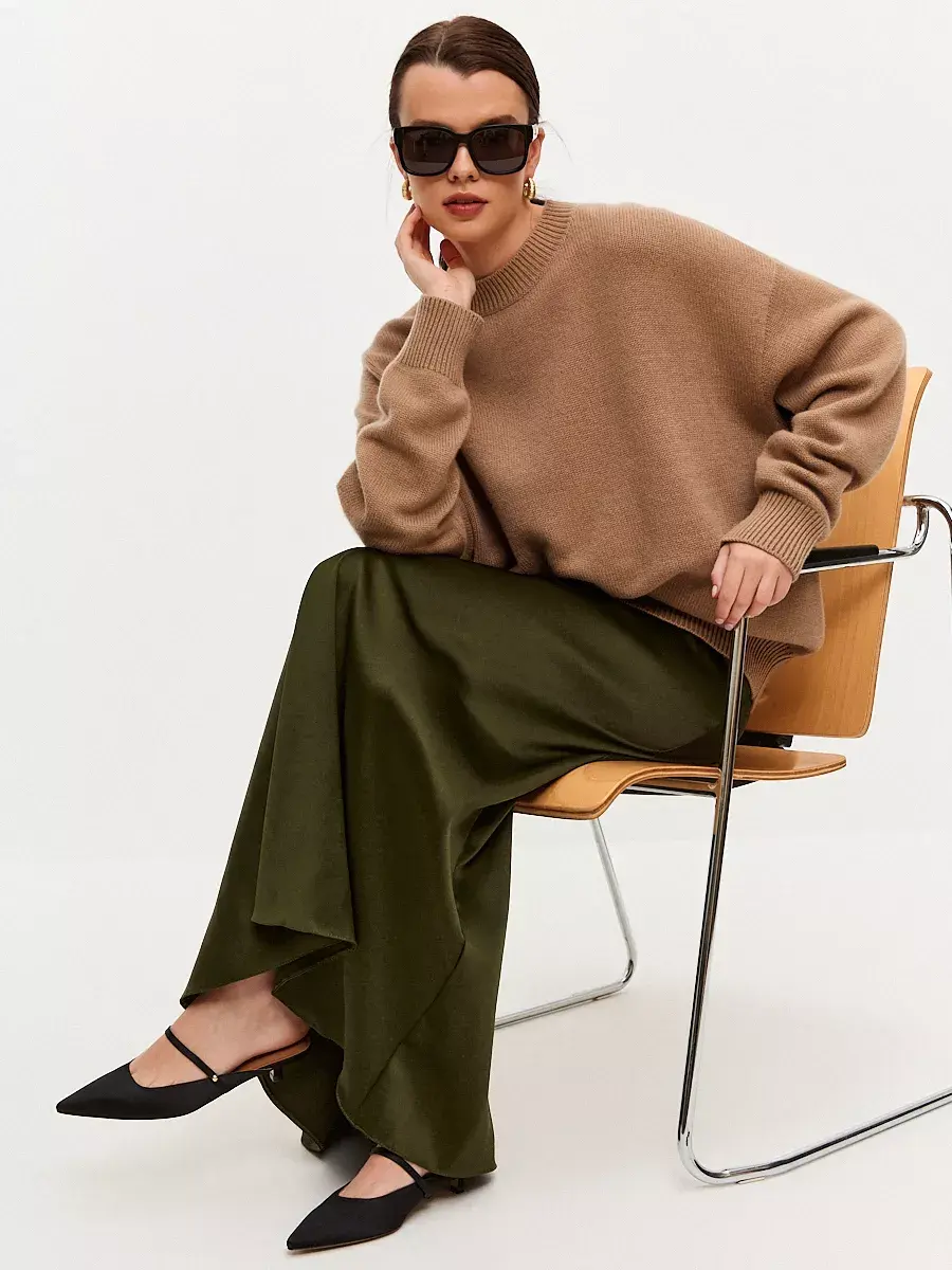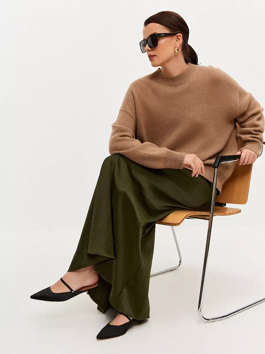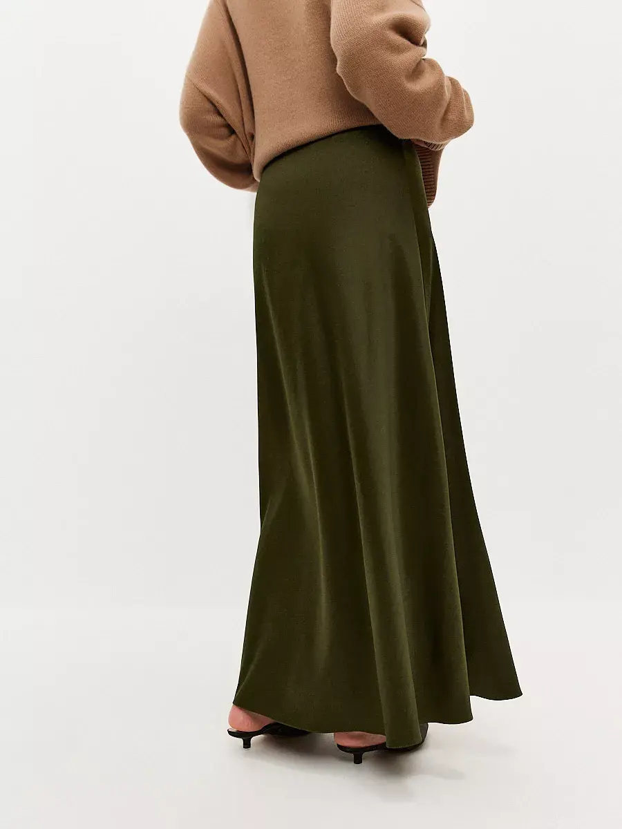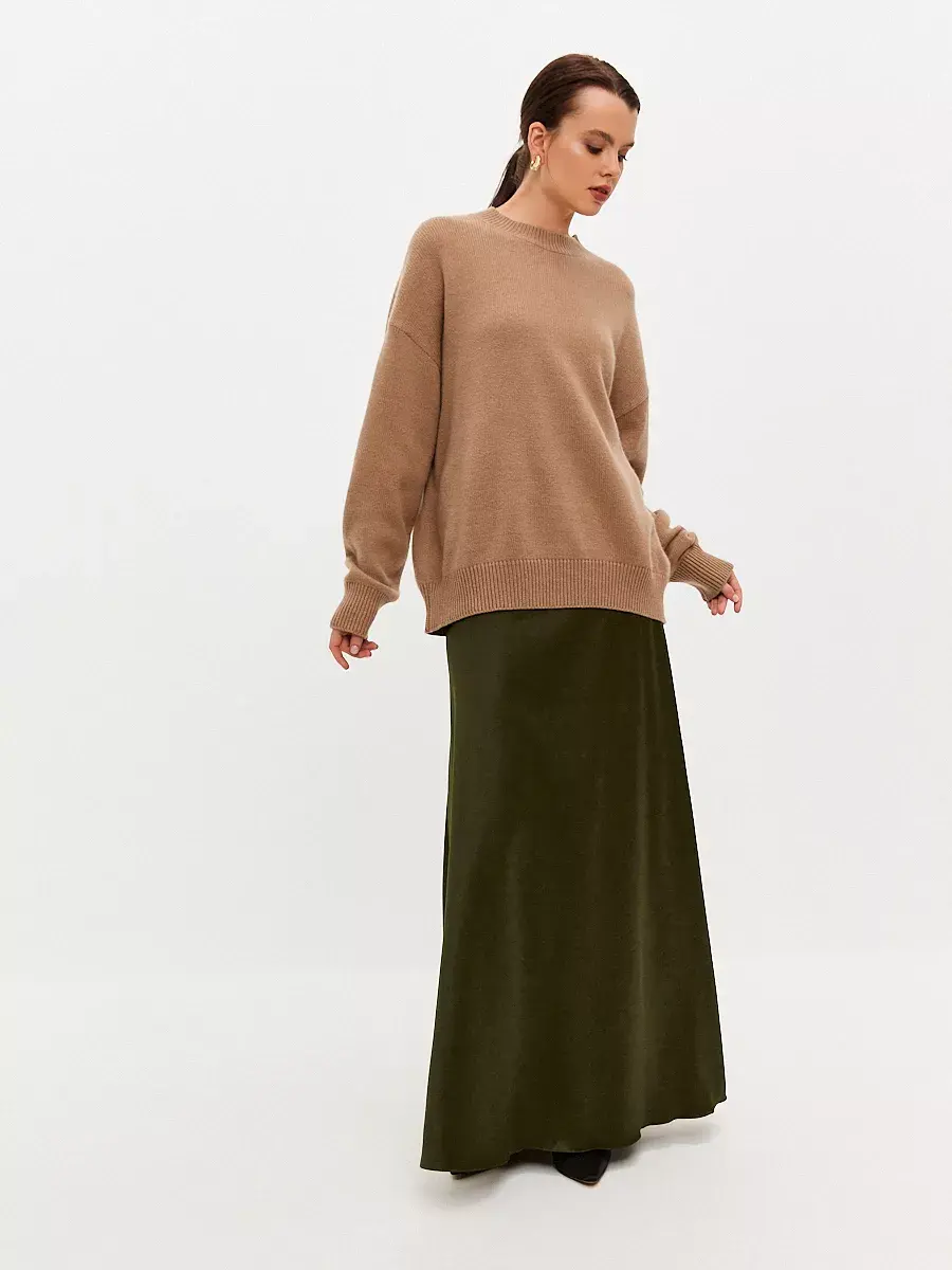 Шелковая юбка цвета хаки, длина мини/миди / макси, базовая вещь в гардеробе у каждой девушки. Юбка длинная без подклада, пояс на резинке. Офисная юбка идеально сочетается с футболками, с женскими топами, объёмными и прилегающими джемперами и лаконичной базовой обувью, а также с топом на тонких бретелях и туфлями на высоком каблуке. В женской юбке Вы будете неотразимы на вечеринке, на выпускном, в офисе, на свадьбе. Благодаря отсутствию подклада шелковая ткань изящно струится по вашим ногам подчеркивая манящий, сексуальный, чарующий вид. Длинная юбка трапеция визуально вытянет вашу фигуру, и придаст элегантность внешнего вида, при этом не сковывая движений. Наши юбки мы шьем сами. Наша цель, удовлетворение качеством нашей продукции любую женщину. Мы тщательно следим за технологией, используем только лучшие шелковые ткани. Каждая юбка проходит проверку на качество материала, пошива и обработки. Это шикарный наряд как для офисного стиля, так и для праздничного настроения. Такая юбка впишется в любой гардероб, её можно легко комбинировать под любой образ, как для офиса, так и для свидания, и т.д. А так же за счёт удобного кроя, она отлично подойдёт для ежедневной носки. Юбка осенне-зимняя женская из плотной ткани. Антистатик, не липнет.