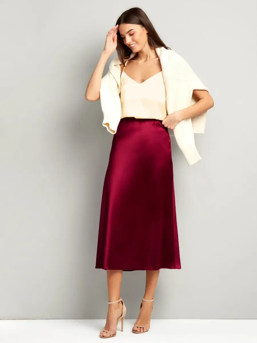 Бордовая юбка — это классика, которая никогда не выйдет из моды. Она прекрасно комбинируется с различными топами и блузками, позволяя создавать как строгие офисные, так и более расслабленные образы. В осенний и зимний период такая юбка станет надежным вариантом для создания стильного лука, который подчеркнёт вашу индивидуальность.