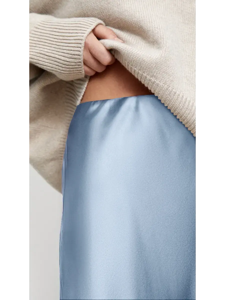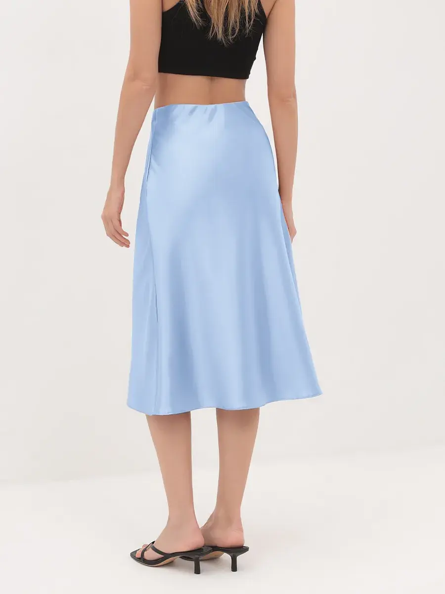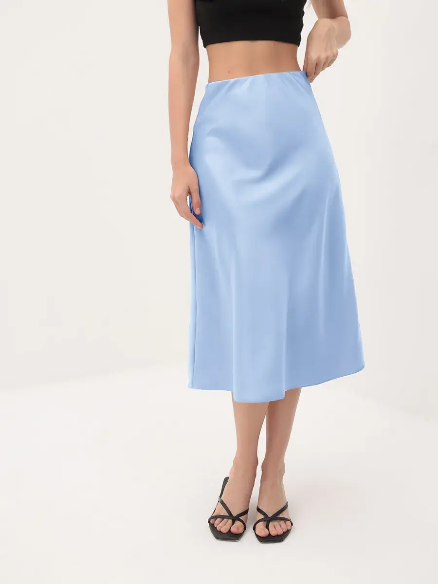 Атласная юбка небесного оттенка — это классика, которая никогда не выйдет из моды. Она прекрасно комбинируется с различными топами и блузками, позволяя создавать как строгие офисные, так и более расслабленные образы. В осенний и зимний период сатиновая юбка станет надежным вариантом для создания стильного лука, который подчеркнёт Вашу индивидуальность.